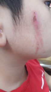 Nhìn bức ảnh trên, chắc hẳn các bạn không xa lạ gì với con vật kia nhỉ? Tôi thì tôi ghét cay ghét đắng con vật này ( Kiến Ba Khoang), nhìn thấy chúng tôi chỉ muốn di chết, nát bét chúng cho hả cơn tức giận. Chả là cách đây không lâu, theo phản xạ tự nhiên con tôi lấy tay gạt ra và vô tình giết chết con vật khi nó bay vào mặt, và bị chất độc của Kiến Ba Khoang gây ra vết bỏng rát, làm phồng rộp và đỏ ửng cả một vệt dài trên vùng da mặt. Nhìn vết thương mà lòng đau nhói, vì nó lại bị ngay trên mặt, làm con tôi hôm nào đi học cũng đeo khẩu trang và đội mũ kín mặt, nhìn rất là tội. Rất may là tôi đã nghe nhiều tin tức và đã có chút kinh nghiệm trong cách xử trí do Kiến Ba Khoang, và trong tủ thuốc gia đình đang có sẵn một loại thuốc mà rất nhiều người dùng cho hiệu quả rất tốt rồi; nên tôi hoàn toàn yên tâm sử dụng, tôi đã nhanh chóng rửa vết bỏng bằng nước muối sinh lý 0,9 % nhiều lần, để khô một chút rồi bôi thuốc OKUSKIN. Ngay sau khi bôi thuốc, vết bỏng đã dịu mát gần như ngay lập tức ( Vì con tôi đã 11 tuổi nên cậu ý cảm nhận rõ). Và điều quan trọng nhất là con tôi không cảm thấy bỏng, rát và khó chịu trong những ngày tiếp theo, với lại vết bỏng sau khi khỏi, không bị thâm đậm như những vết trầy xước trước kia của con tôi để lại, tại vùng da non mới mọc lên không hề bị ngứa; hẳn là các bạn đã ít nhiều trải qua nhưng vết thương rồi, nên nếu các bạn để ý, thì vùng da mới mọc lên rất ngứa và khó chịu, vùng da đó sau khi khỏi để lại vết  thâm rất lâu mới trở lại được như vùng da lành ( có những vết thâm vài tháng, thậm chí đến cả năm vẫn chưa hết thâm). Nói đến đây chắc hẳn các bạn vẫn còn hoài nghi hoặc các bạn cho rằng là tôi nói phét. “Trăm nghe không bằng một thấy” tôi đăng vài tấm hình của cu cậu nhà tôi để các bạn xem và đánh giá nhé.